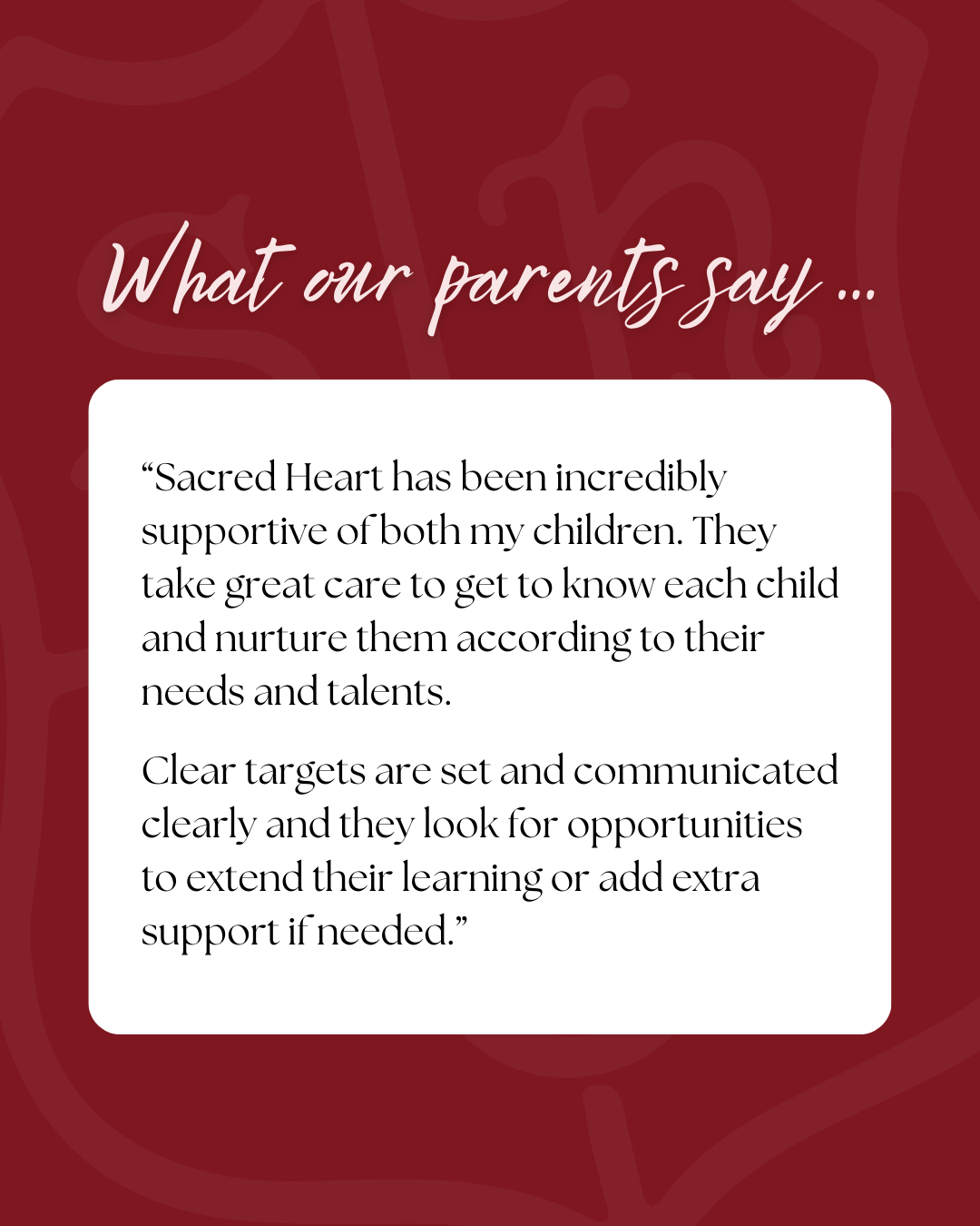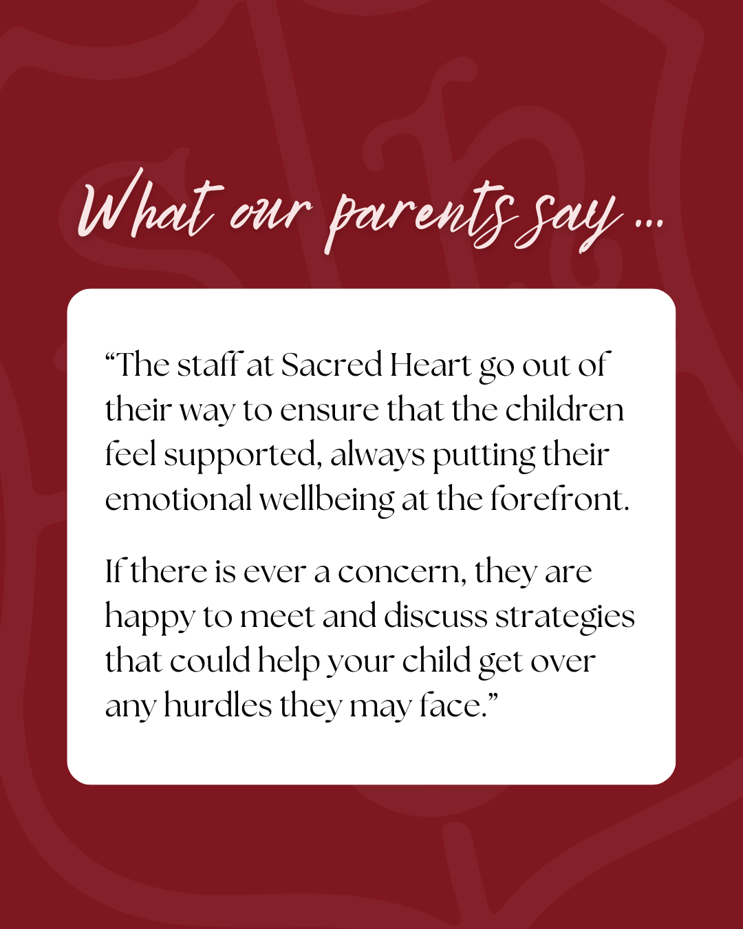 We look forward to welcoming your child to Sacred Heart School and helping them realise their full potential.